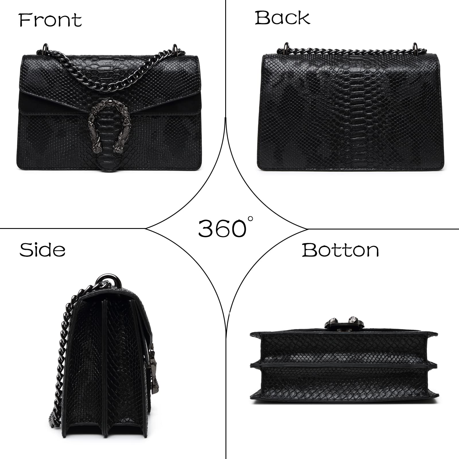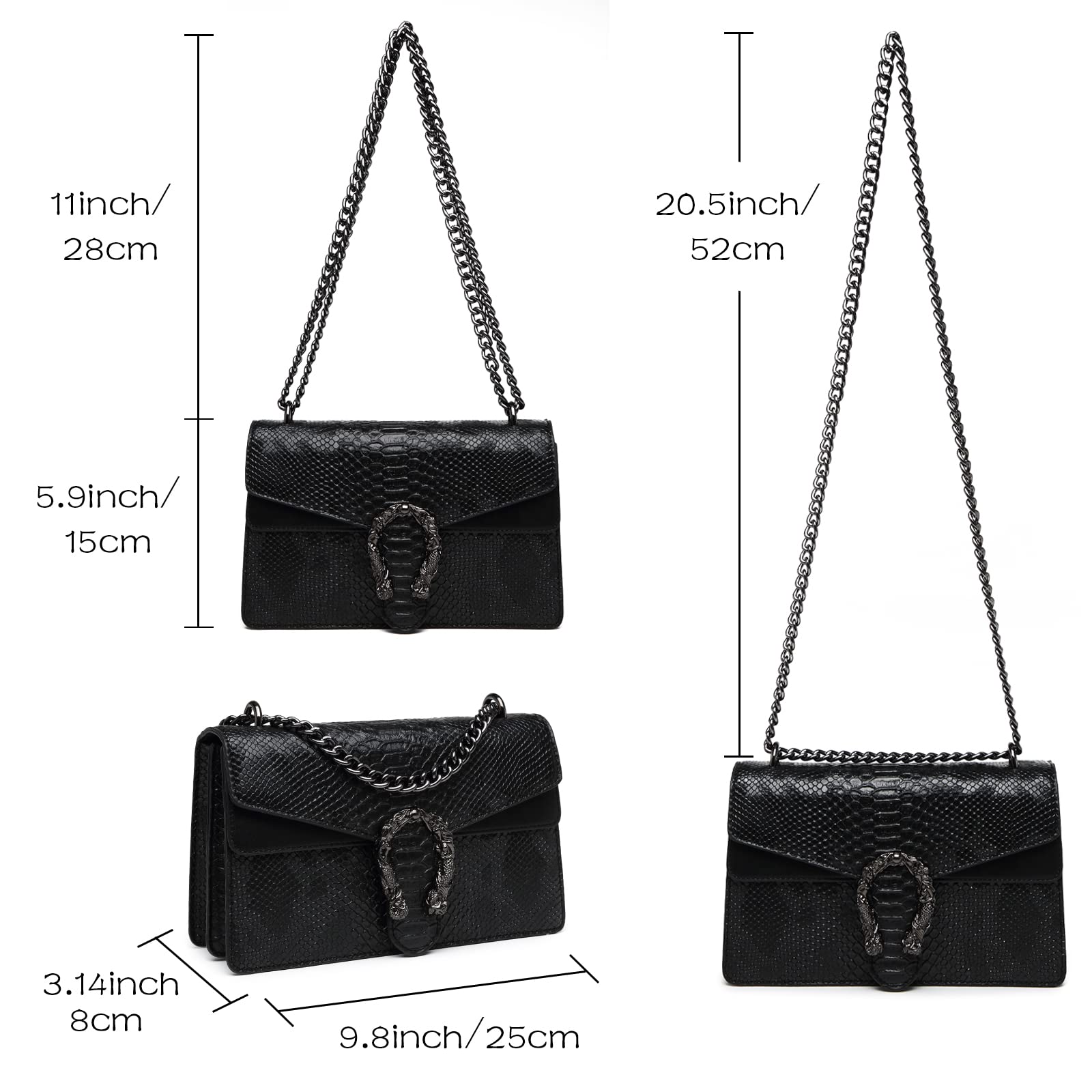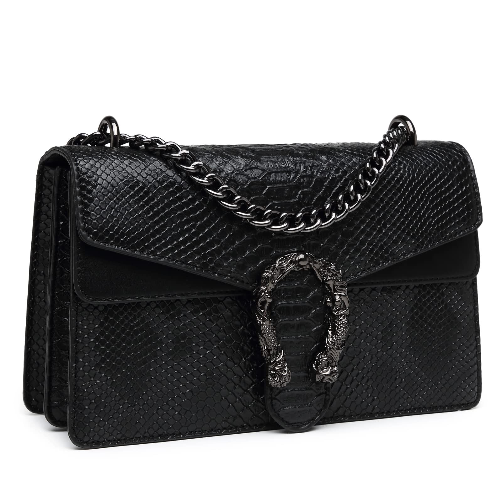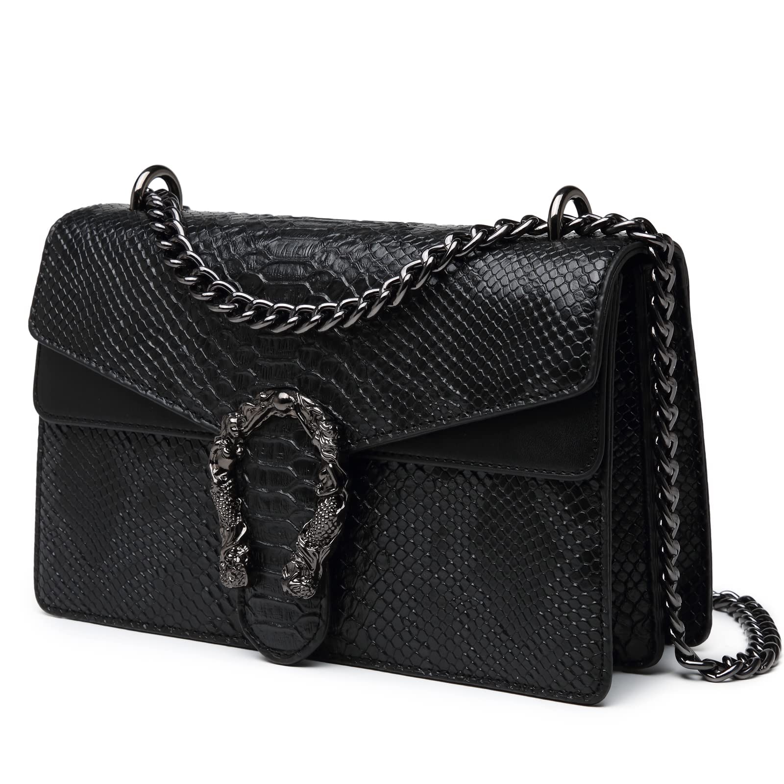 MYHOZEE Crossbody Bags for Women - Snake Printed Clutch Purses Leather Chain Shoulder Bags Evening Handbags