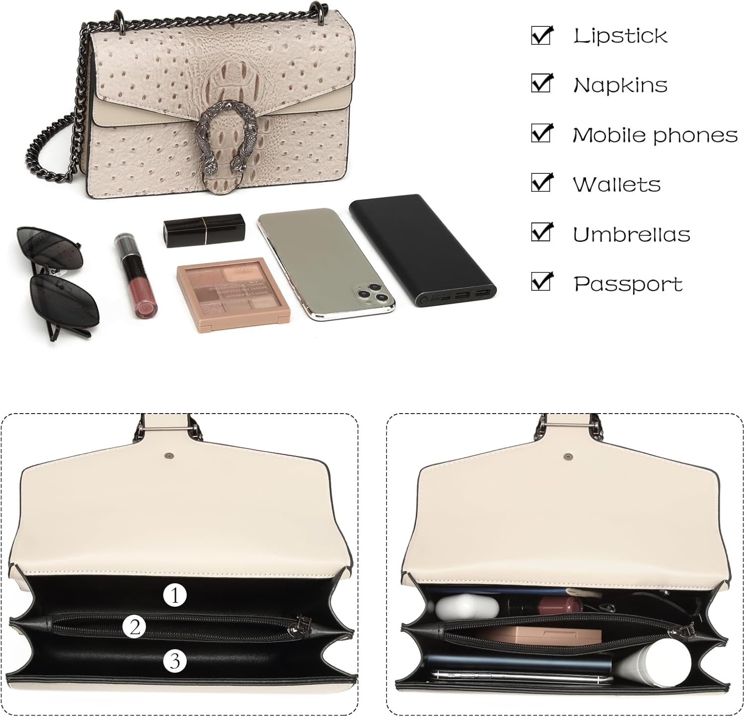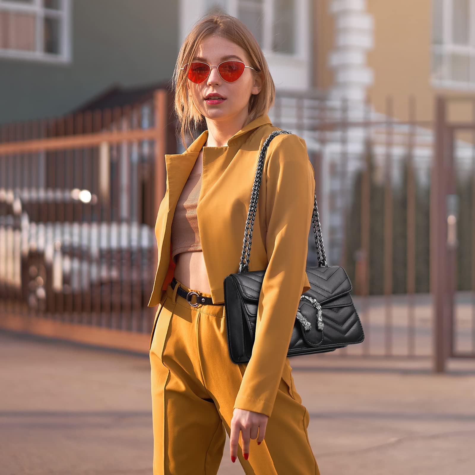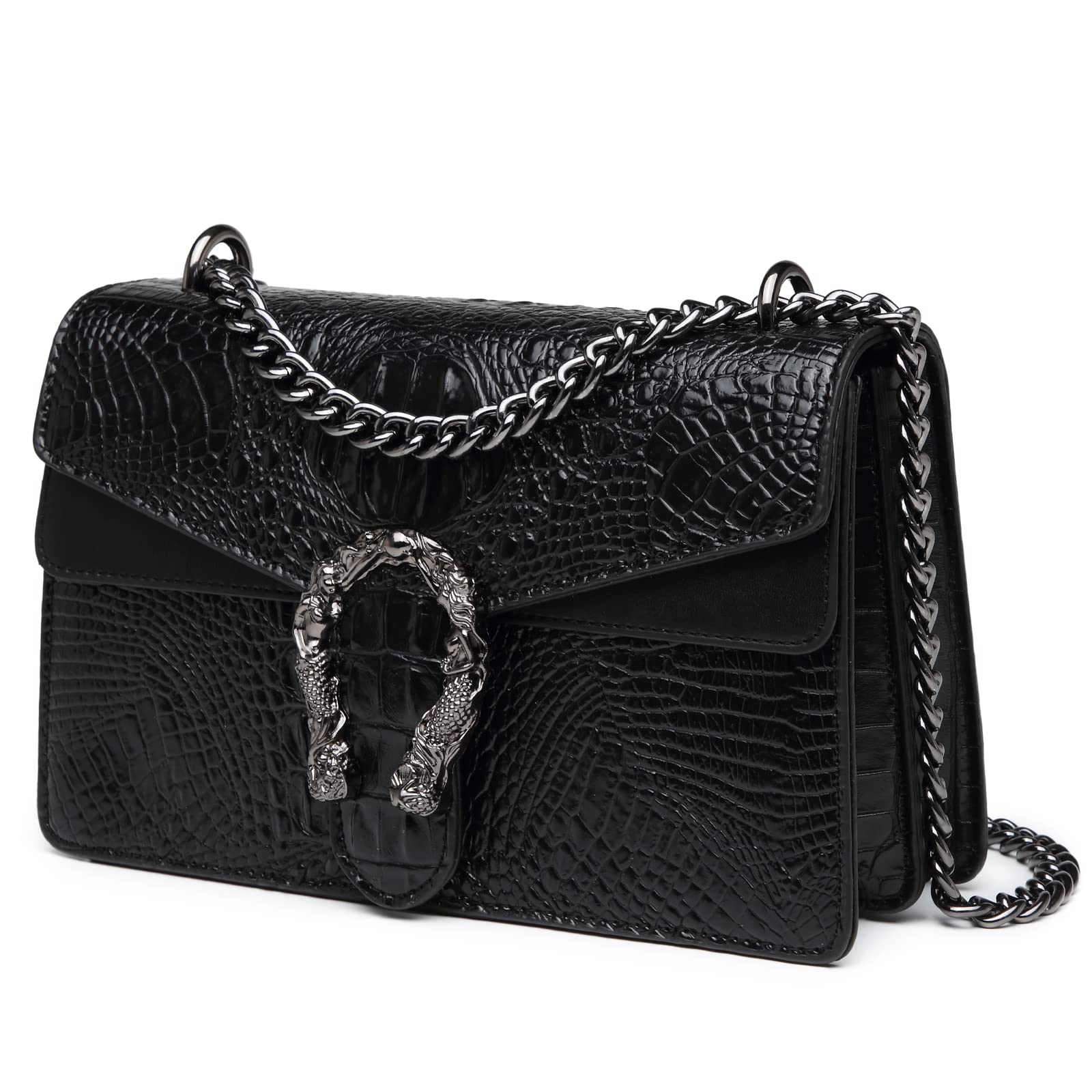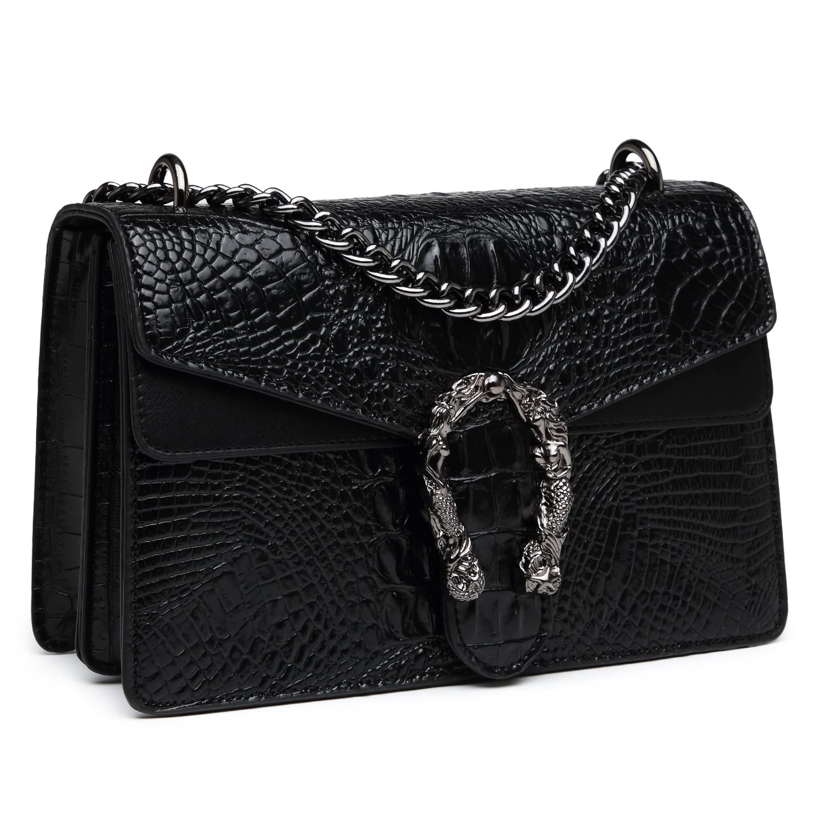 MYHOZEE Crossbody Bags for Women - Snake Printed Clutch Purses Leather Chain Shoulder Bags Evening Handbags